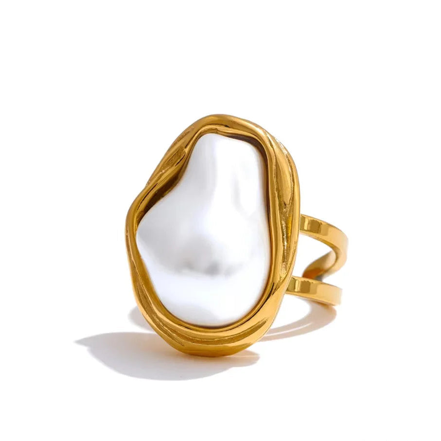 Enjoy this double set - Cuban chain for the necklace, delicate chain for the second necklace, paired with freshwater pearls encased in a gold dome for the pendants, earrings and ring. Lightweight and absolutely timeless. Great for outdoors. Hypoallergenic, waterproof, stainproof.