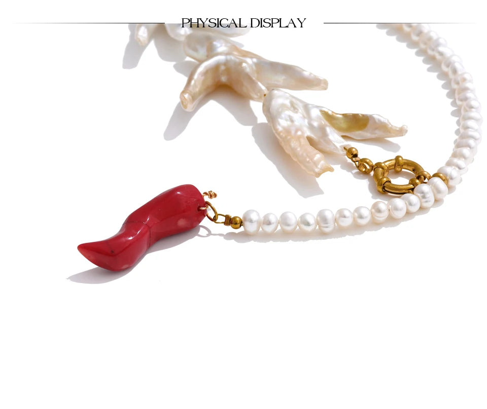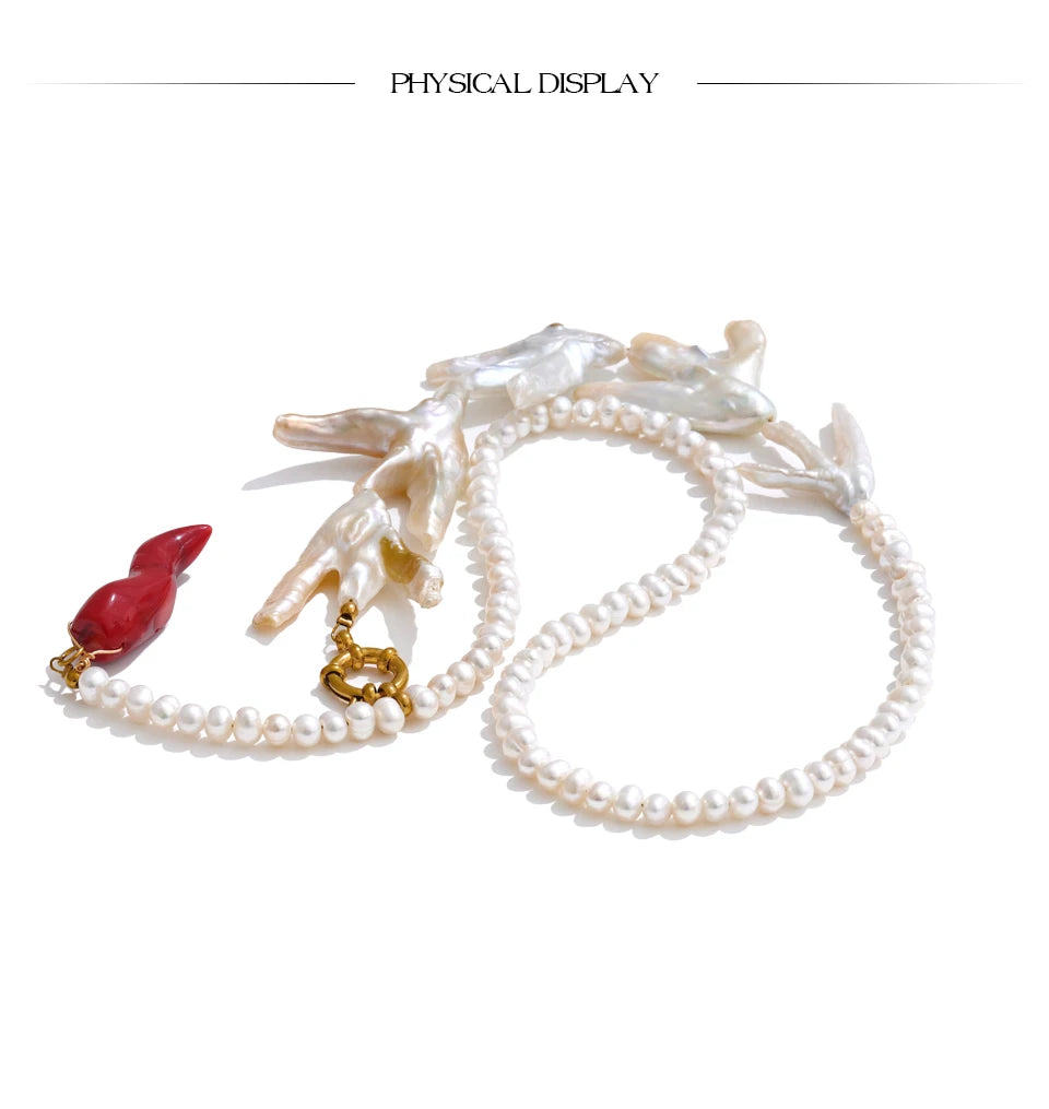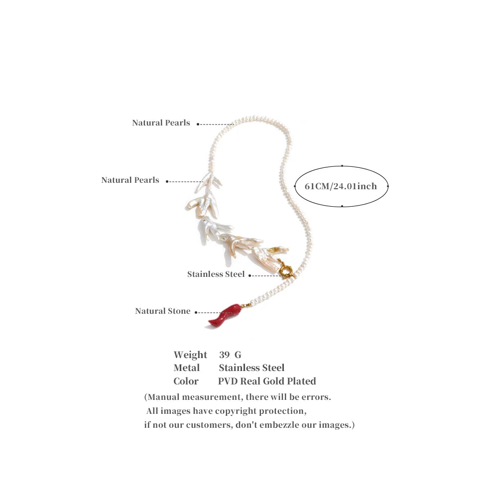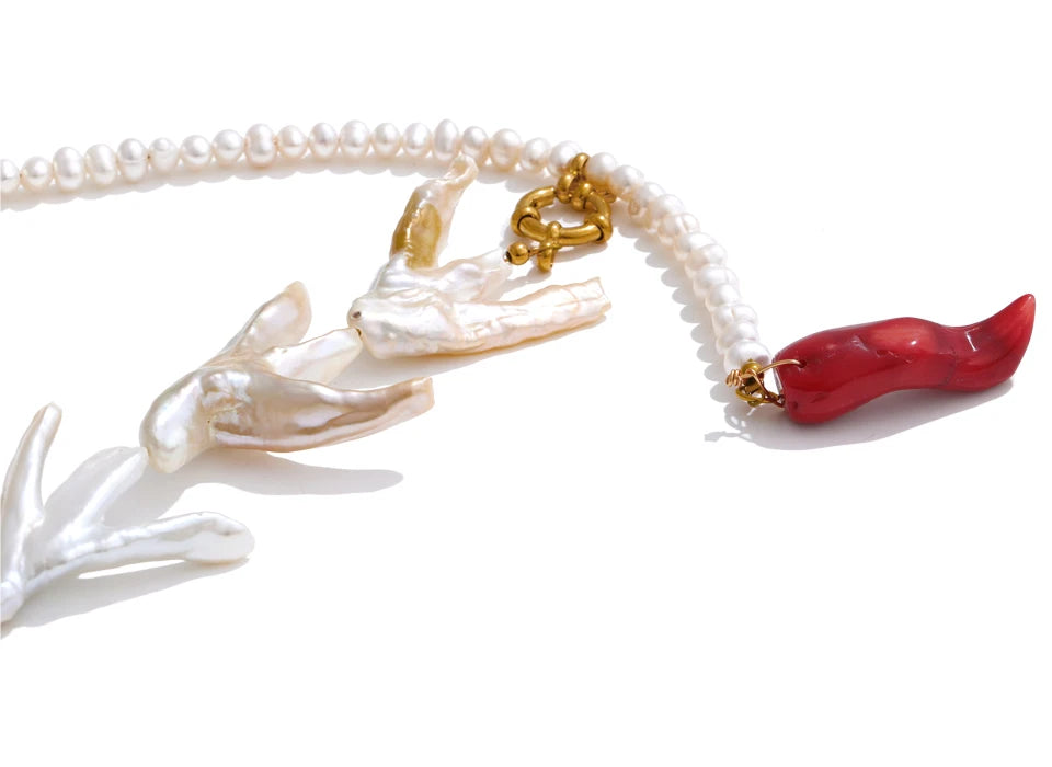 Made of natural pearls and enamels, this stunning baroque style necklace is both authentic, durable and stylish. With round pearls, stainless steel gold chains, beautiful enamels and fresh water pearls, piece is set to be the new highlight of your wardrobe. Free from allergies and fade.
