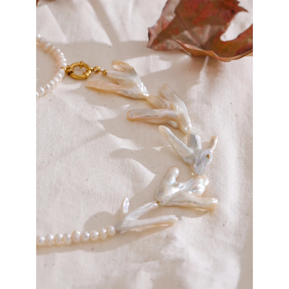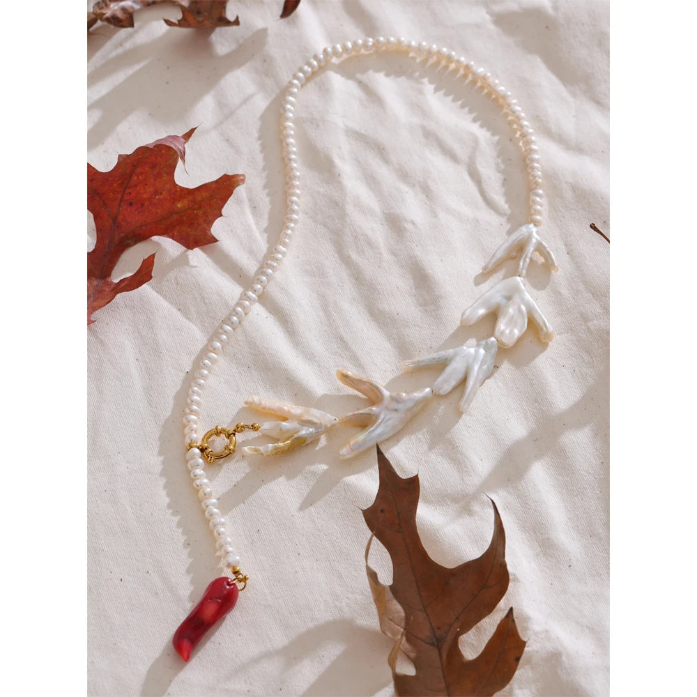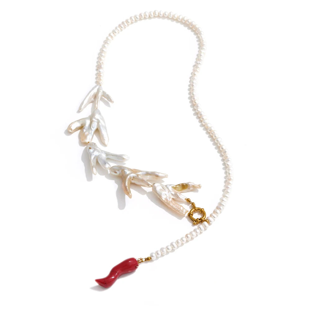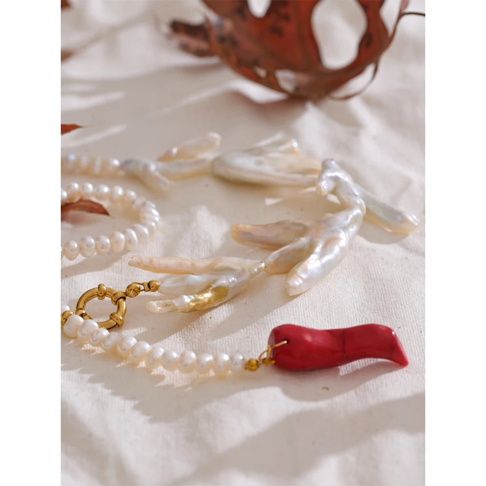 Made of natural pearls and enamels, this stunning baroque style necklace is both authentic, durable and stylish. With round pearls, stainless steel gold chains, beautiful enamels and fresh water pearls, piece is set to be the new highlight of your wardrobe. Free from allergies and fade.