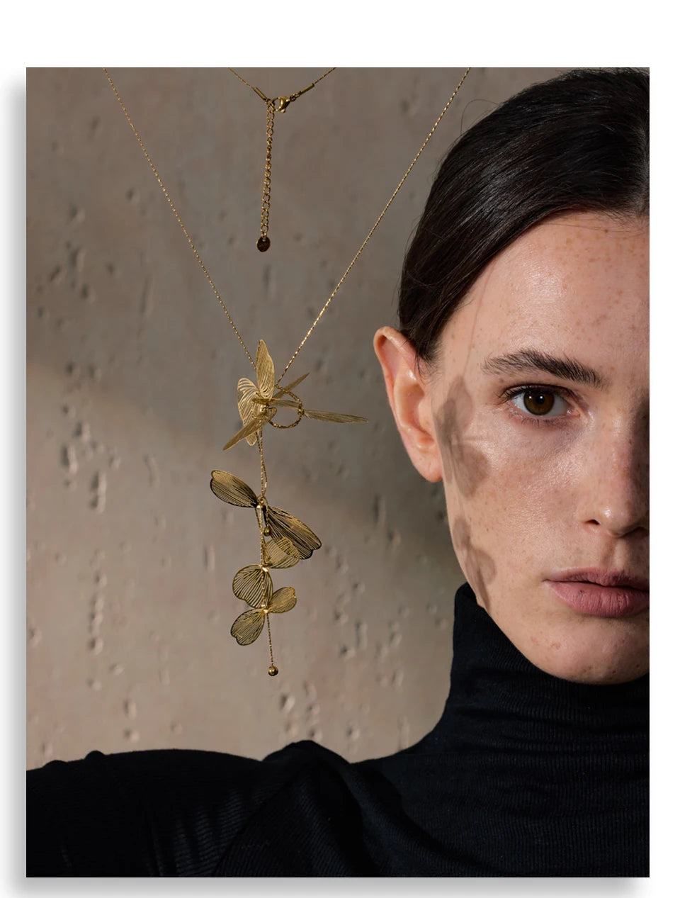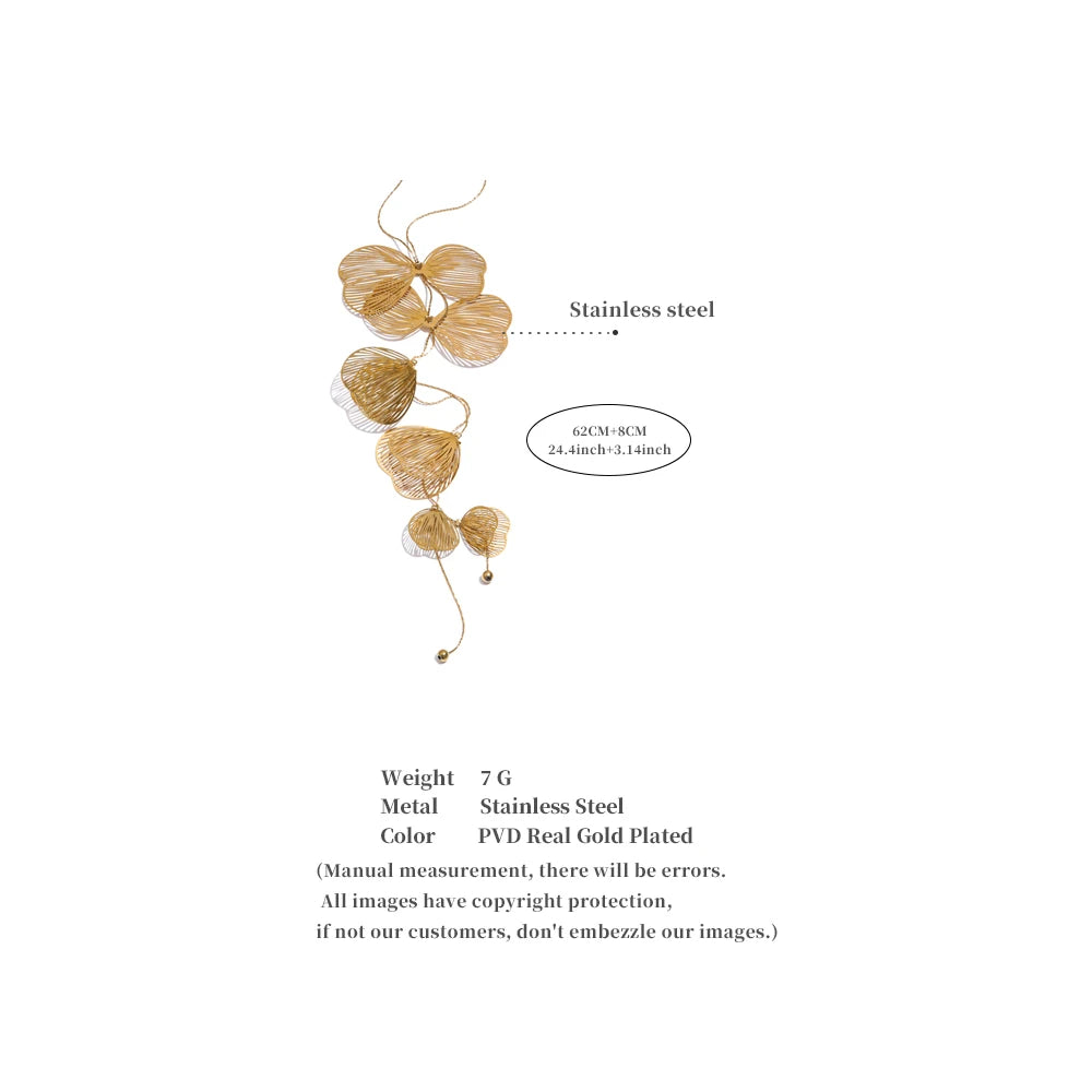 Stylish, out of norms and trends. This geometric statement piece, looks like wide flowers butt rest inside a circular hoop. Net like, film like, lightweight, airy and stylish. Beauty and wonder in timeless pieces.